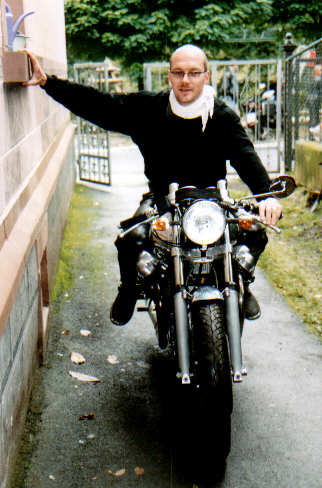 Wenn man die Haxen erstmal mühsam auf den weit hinten und oben gelegenen Rasten verstaut hat, ist es in der Tat ein wenig mühsam, sie wieder auf den Boden zu setzen...ob ich für Ampelstopps eine Fensterbank mitführen sollte? |