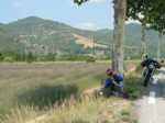 Leider präsentierte sich die "Garage de France" als sehr typisch französisch: Ein paar Autos auf den Hebebühnen, Werkzeug kreuz und quer, Motorblöcke, Reifen, Auspufftöpfe und kein Mechaniker weit und breit. An der Tankstelle kriegten wir den Tip, es 500m weiter zu versuchen! Und prompt fand sich auch eine Citroën Werkstätte, deren Mechaniker sich sofort daran machte fachgerecht die Vorderradbremse von Hiesis unkaputtbaren zu entlüften [Bild 4]. Nachdem mit Bremsenreiniger die letzten Tropfen der aggressiven Flüssigkeit entfernt worden sind, der hilfsbereite Mechaniker mit 5 Euronen entlöhnt wurde, ging es endlich weiter um den Grand Canyon du Verdon zu besichtigen.