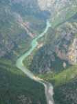 Und das nächste grandiose Naturschauspiel "Grand Canyon du Verdon" wartete auf uns. [Bild 10] Ca. 30 km lang, 1000 Meter tief, und an beiden Flanken klebte eine extrem kurvige Straße, die bedauerlicherweise für Wohnmobile und -anhänger nicht verboten war. Wir entschieden uns für die südliche. Bis auf die sehr wellige Straße, die unseren Fahrwerken alles abverlangte (vorausgesetzt natürlich eine nicht meditative Fahrweise), war es ein sehr beeindruckendes Naturschauspiel und wurde auch mit sehr vielen Stops und Fotos belohnt. [Bild 11] [Bild 12] [Bild 13] Leider verplemperten wir so viel Zeit mit der Landschaftsbetrachtung, daß wir es doch tatsächlich schafften, 5km vor unserem Etappenziel Castellane in einen prächtigen Wolkenbruch zu geraten! Der war allerdings so heftig, daß wir es vorzogen, schnell in einer Scheune um Herberge für uns und unsere Untersätze zu bitten.