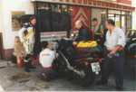 Nachdem wir von Dominique wie Söhne mit Umarmung und Küßchen links und rechts verabschiedet wurden, fuhren wir wieder nach Sisteron, um uns Hiesis Vorderradbremse zu widmen, sprich: Entlüften war angesagt! Als Werkstätte unseres ersten Mißtrauens wurde gleich diejenige bestimmt, welche neben der Tankstelle war, die Svens gestriges Spritproblem und die verkrampfte Sitzhaltung in letzter Minute löste.